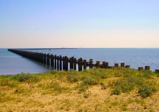ThecurrentBoomwasbuiltin1944replacingthe woodenstructurewhichwasdemolished,thenewBoom islocated100yards(91m)eastoftheoriginal.Thiswas constructedbysinkingre-enforcedconcretepilesinto theseabed,stretchingtothesandbanks2milesoff shore.TheBoomontheKentcoatwasneverreplaced, withthe1939/40Boombeingdemolishedasahazardto shipping.Afewsectionshavebeenremovedwhilstotherparts havecollapsed,theroadwayhaslongbeenremoved leavingjustthere-enforcedpilesandbracinginplace, corrosionisevidentacrosstheentirestructurewiththe bracingshowingveryheavycorrosionandanumberof there-enforcedpilesshowingsignsofsplittingand burstingfromthemetalcorrodinginsidetheconcrete, thissaidthestructuredoesstillappeartobefairlysound and should last many more years.TodayfiftyfiveyearsaftertheColdWarBoomwas constructedanddecadesafteritwasabandoned, strangelyitisstillcoveredbythe1953OfficialSecrets Act and is "forbidden" to be photographed!
